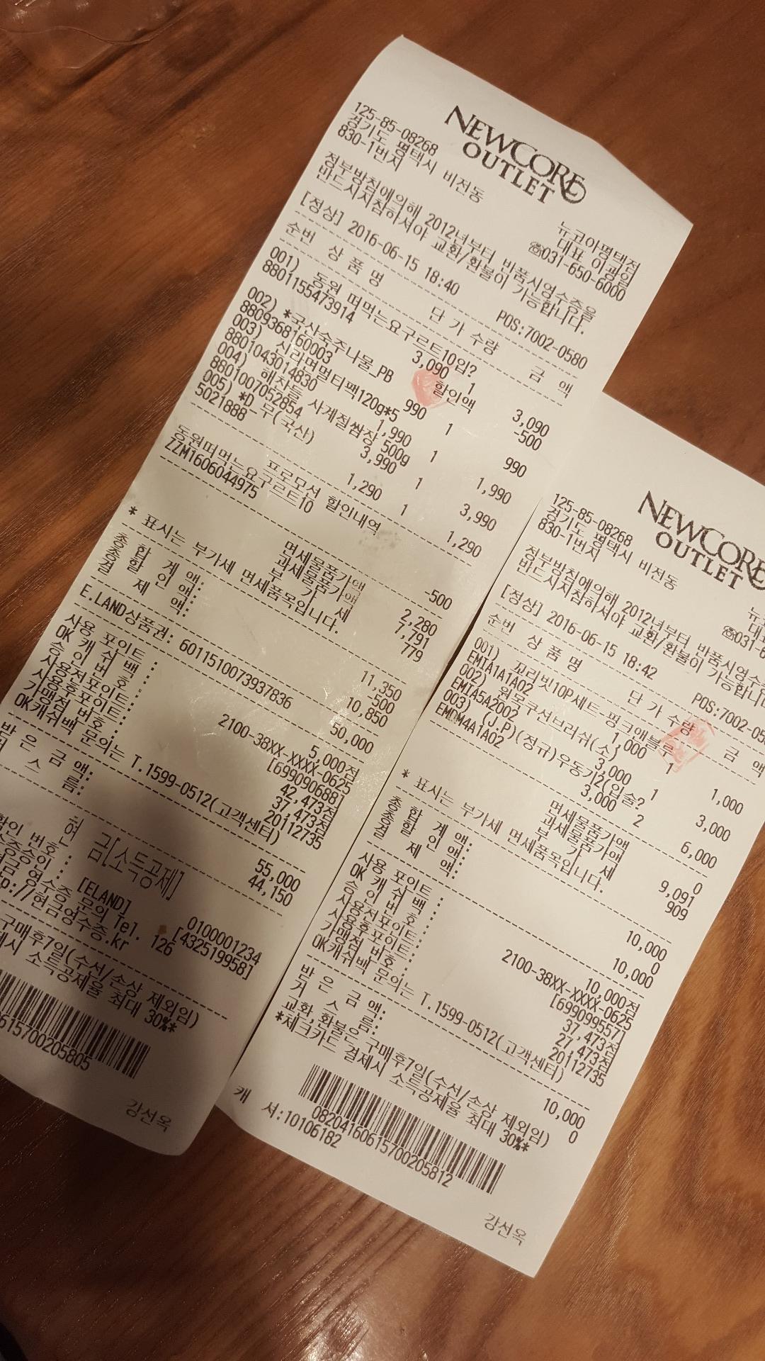 2만원 정도 사고 영수증 따로 챙겼는데