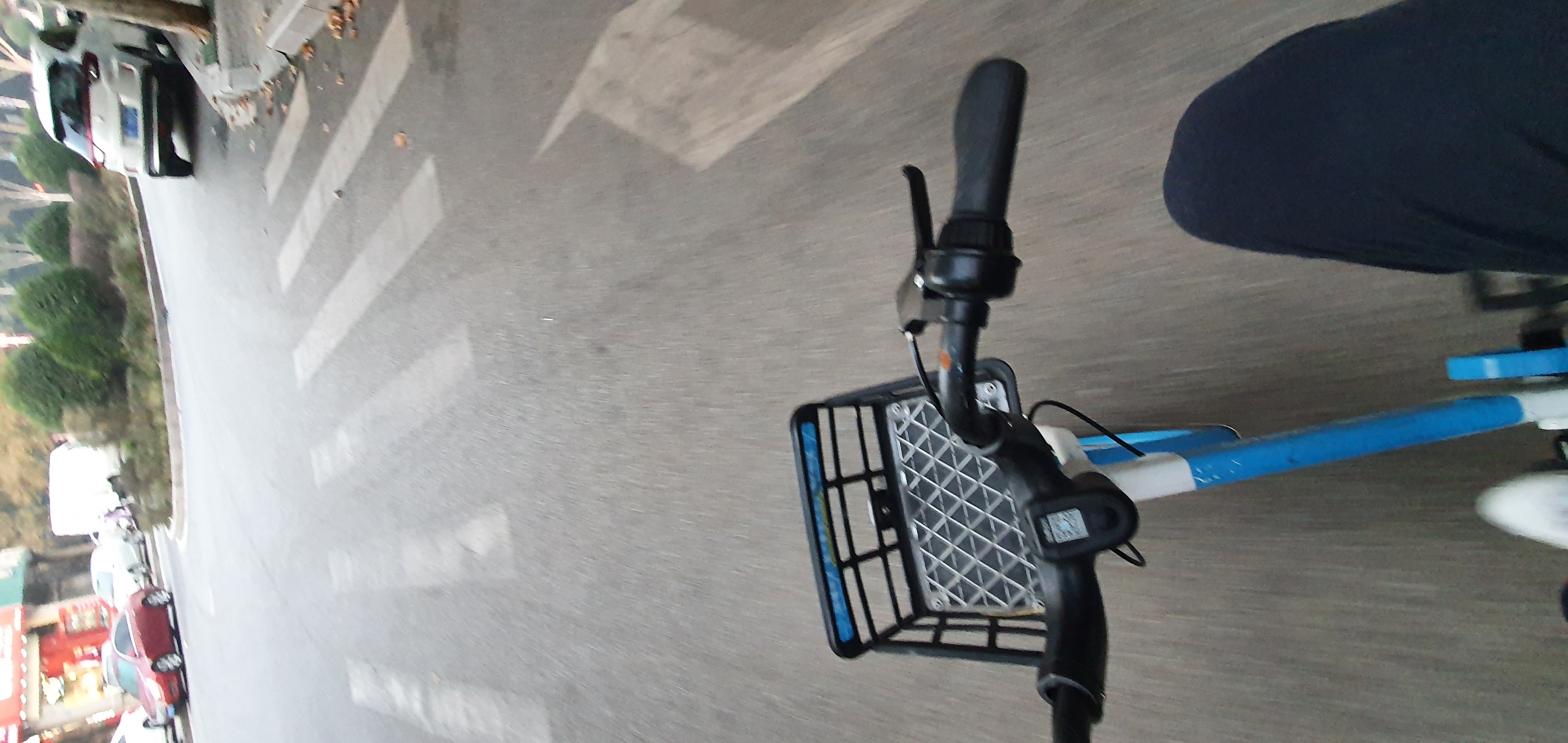 바로 위에 보이는 하늘 색 자전거가 공유 자전거인데요.
