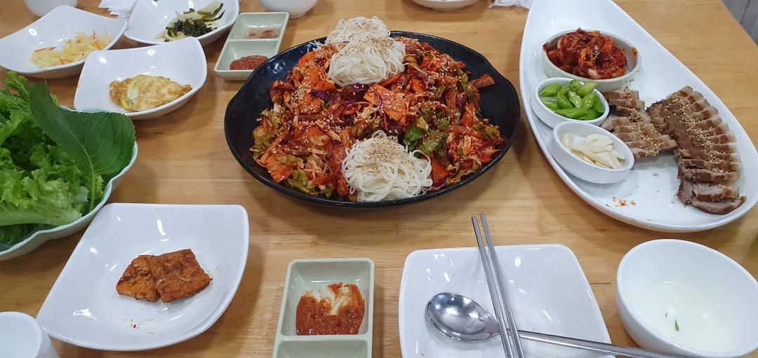 이집 부대찌개랑 골빔면+삼겹살 셋트가 맛있는데 ㅋㅋ