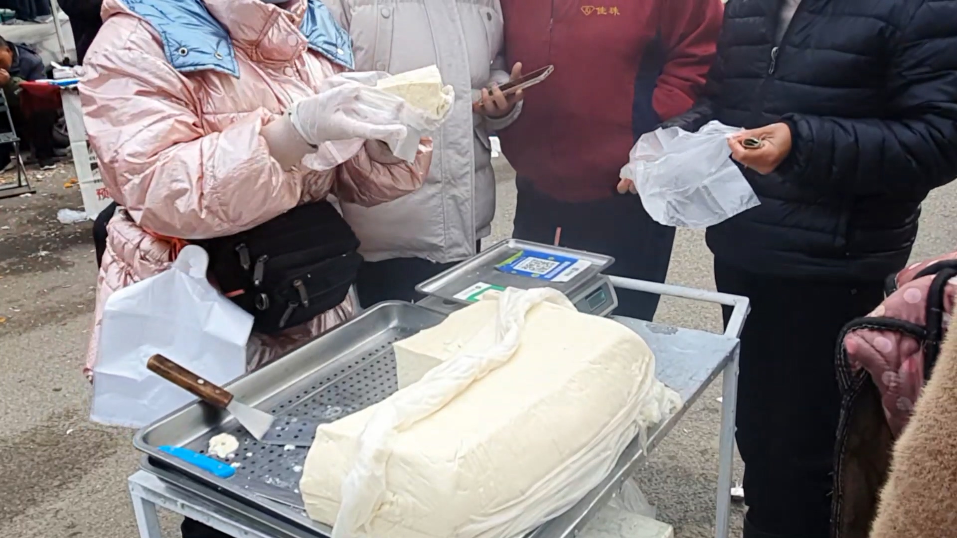 처럼 따뜻한 두부입니다. 잘라서 무게로 달아팔아요 .