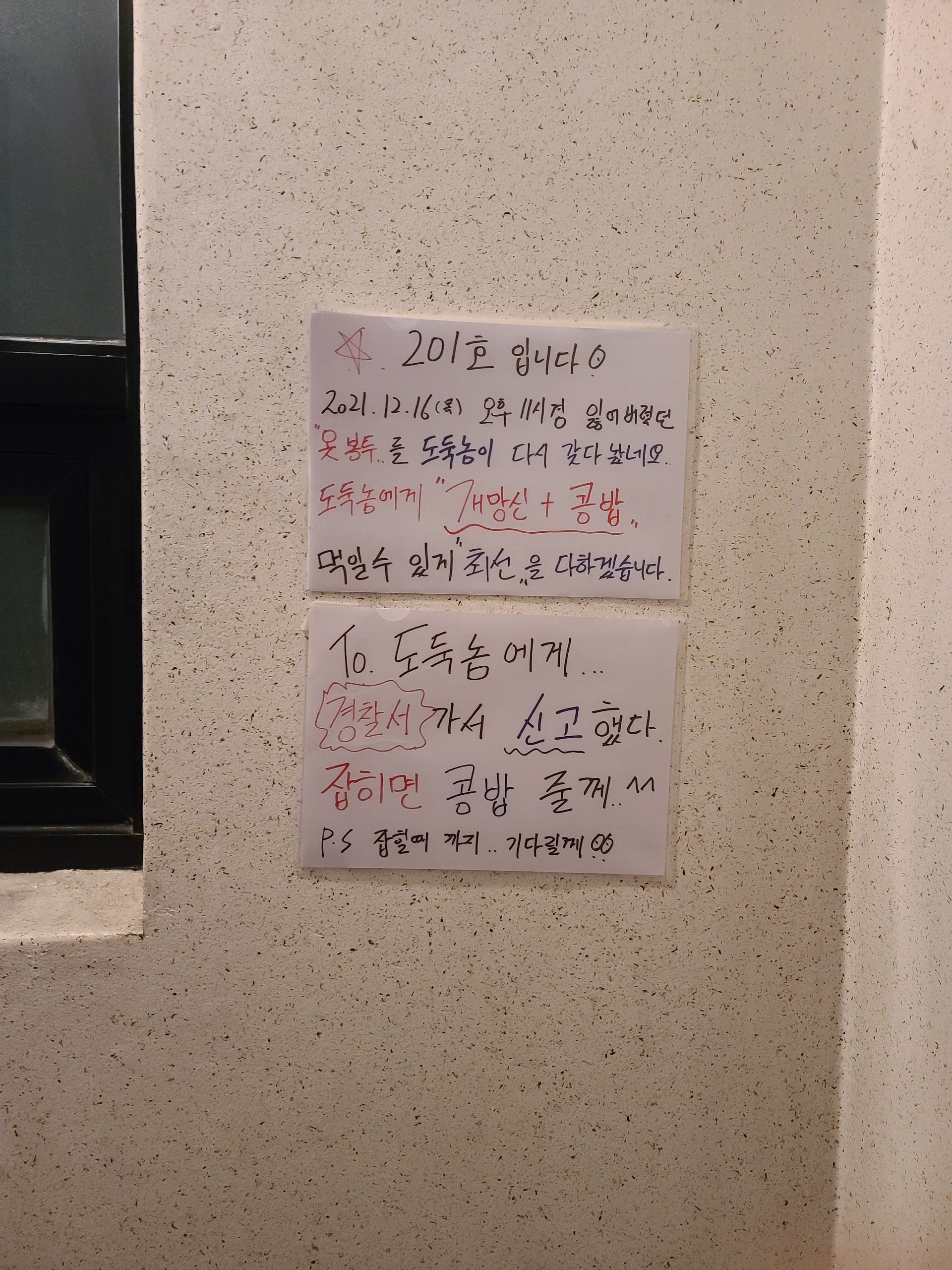 빌라에 도둑 사시면 택배 때문에 스트레스 많이 받으시겠네요.