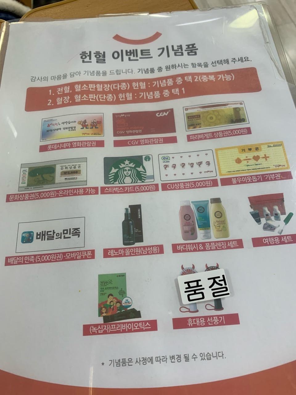 헌혈기념품 종류도 많고 기념품도 2개 주는데