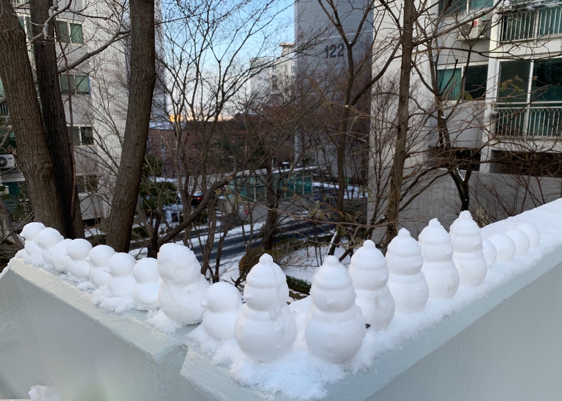 눈오리. 눈사람. 축구공 3개 들고 나갔는데