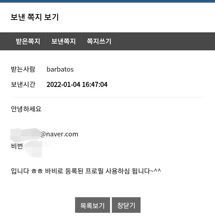 쪽지보내기 자기소개 아이디로 검색