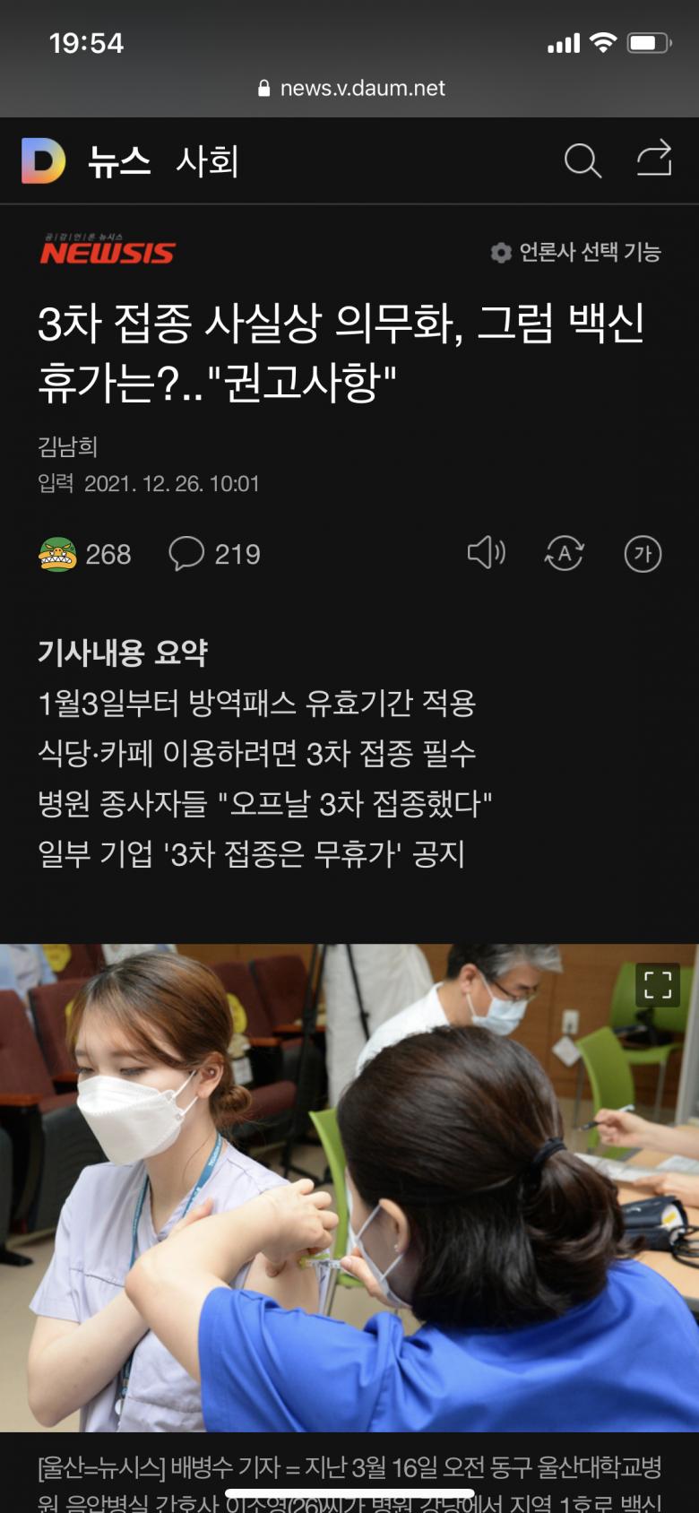 3차 백신 접종 후 회사에서 대체휴가 주나요?