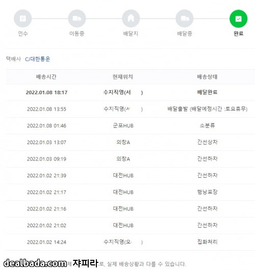 집하랑 완료가 둘다 수지직영점이니 제품파손으로 반송되서 원래 보낸곳으로 돌아 갔을수도 있겠네요.
