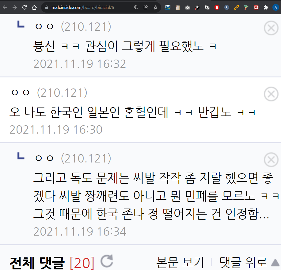 오 나도 한국인 일본인 혼혈인데 ㅋㅋ 반갑노 ㅋㅋ