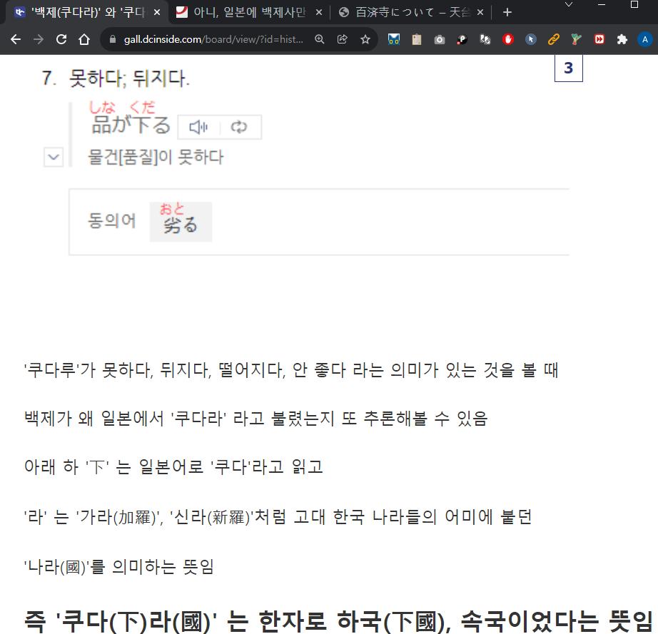 백제가 존나 X 구리다는 뜻으로 구다라라는데