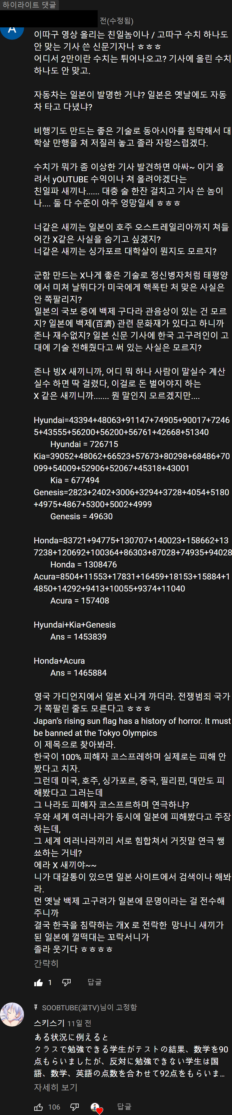 이따구 영상 올리는 친일놈이나 / 고따구 수치 하나도 안 맞는 기사 쓴 신문기자나 ㅎㅎㅎ