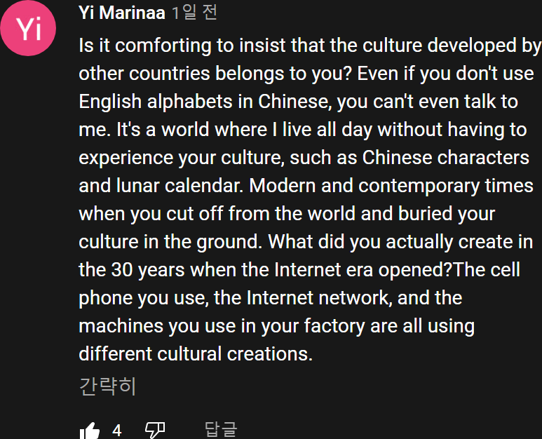 다른 나라에서 발전한 문화가 중국의 것이라고 주장하면 위안이 되나?
