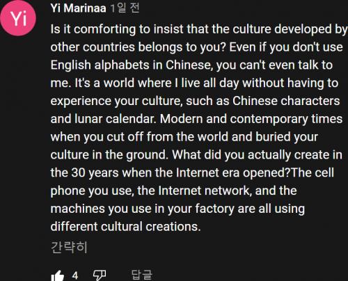 중국인은 영어 알파벳을 사용하지 않고 중국어로 나와 대화도 할 수 없다.