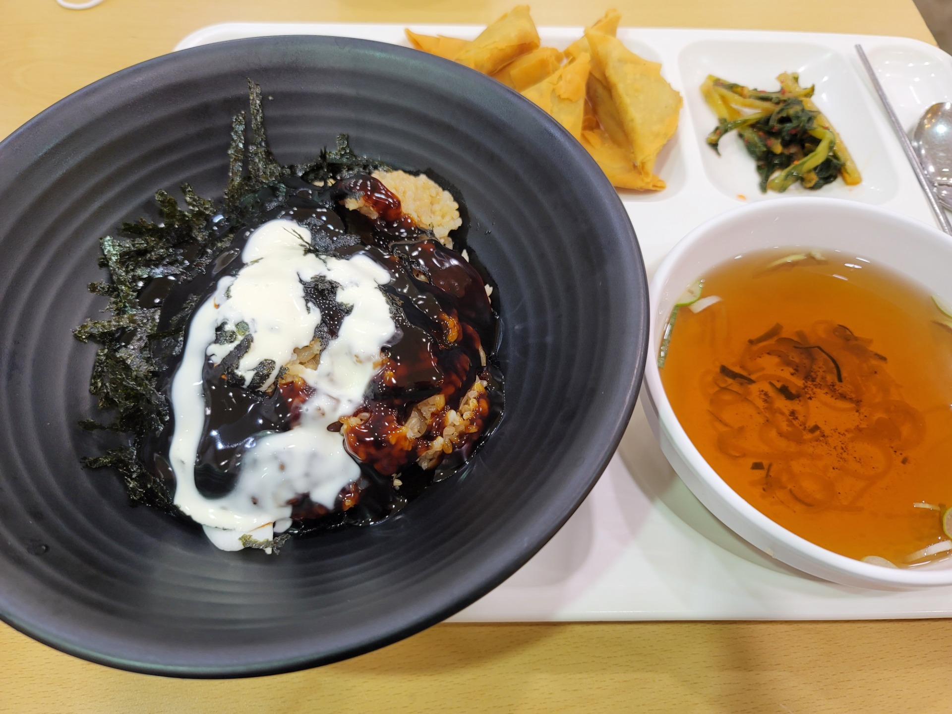 근무 끝나고 구내식당에 내려왔더니 오늘아침메뉴가 스팸마요덮밥이네요~
