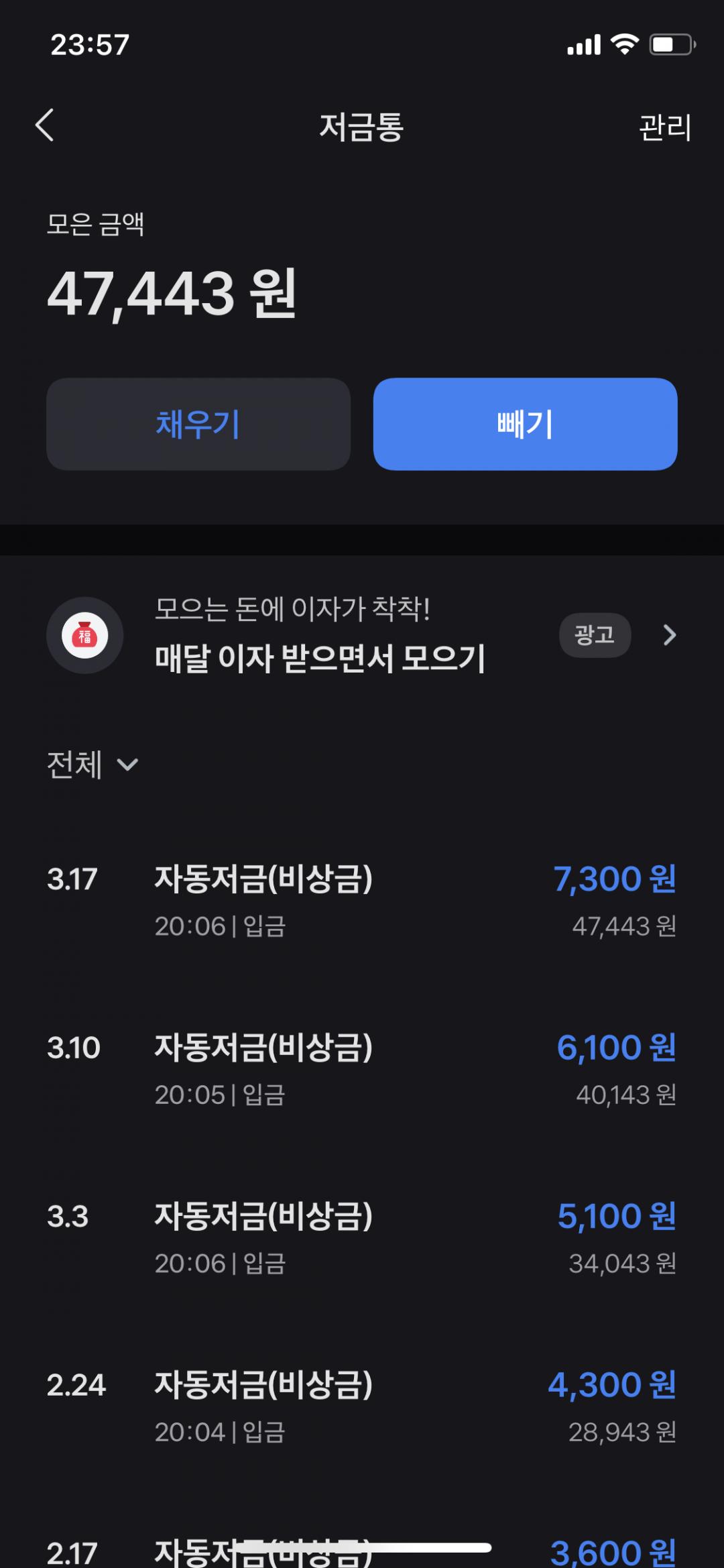 그리고 어느날부터인가 토스에 저금통 기능이 생겼길래