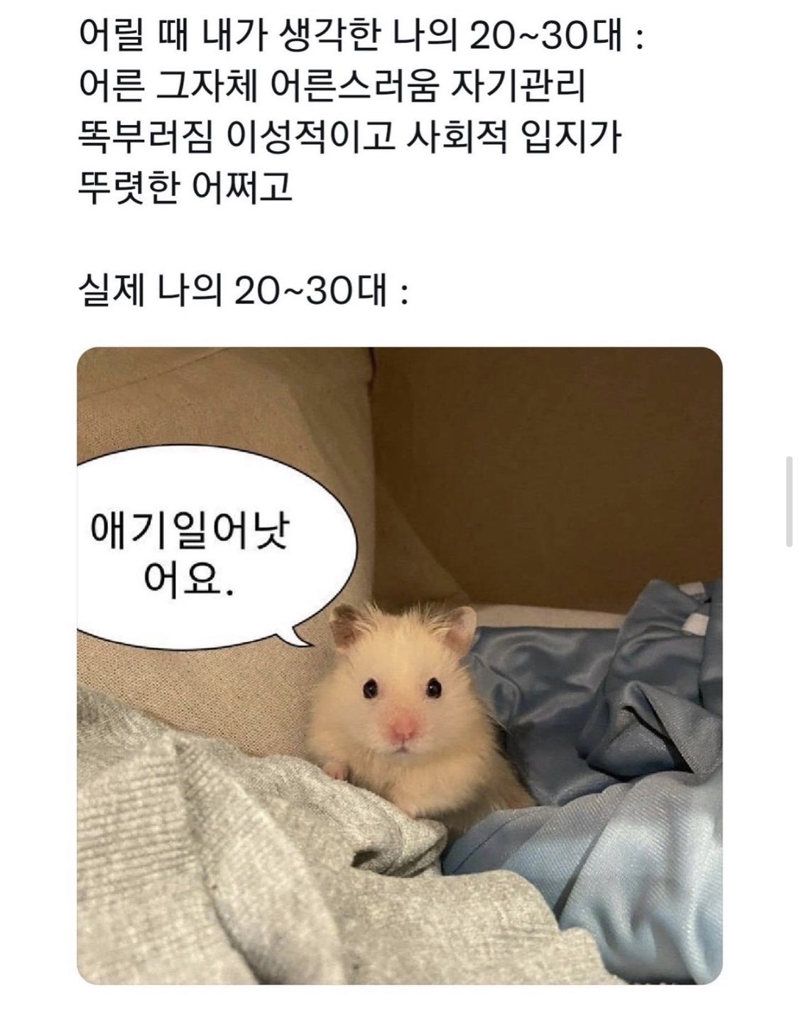 ㅋㅋㅋㅋㅋㅋ 진짜 어렸을때 바라봣던 30대는 완전 으른이였는데 저는 여전히 철 안들어있네요.. |
