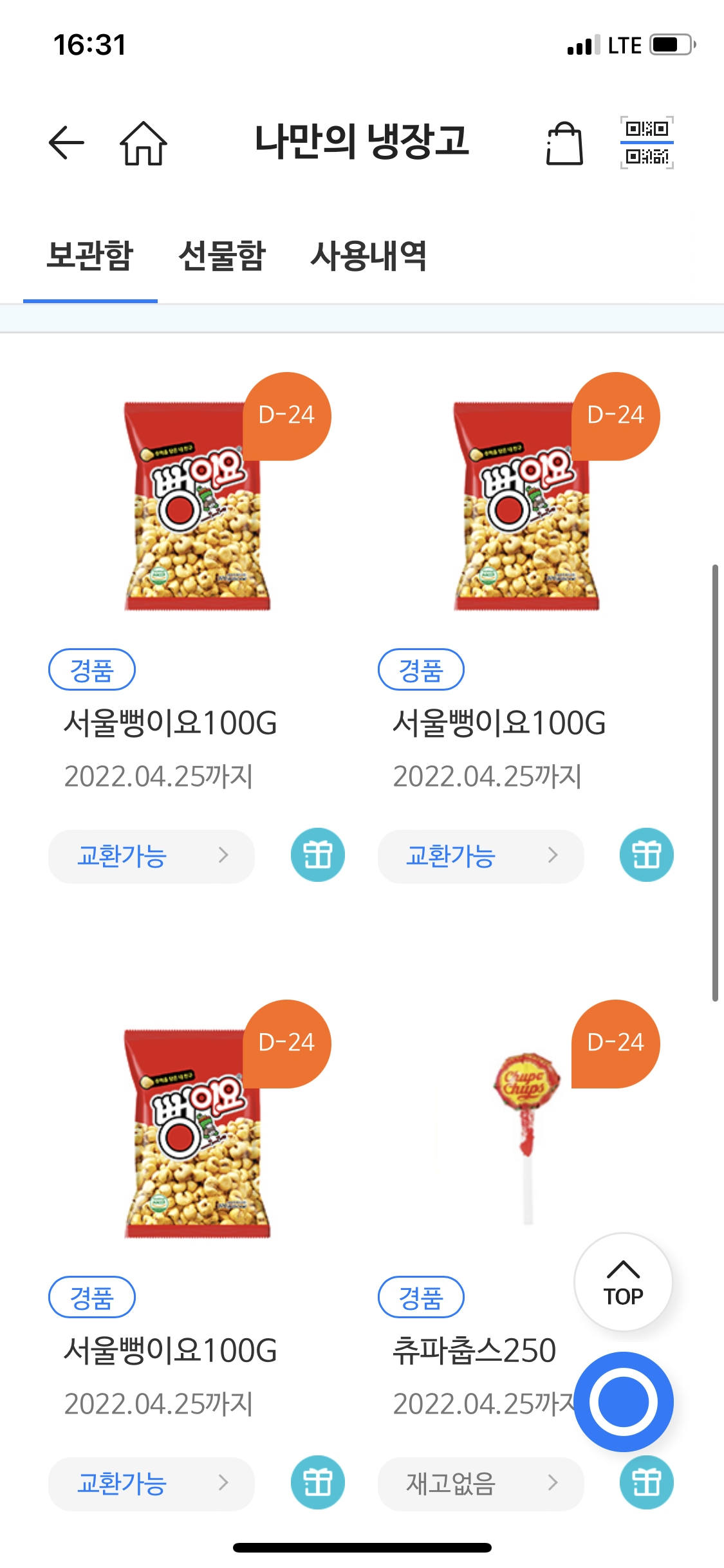 응모권 다 터치해서 총 6개가 냉장고에 들어갔구요