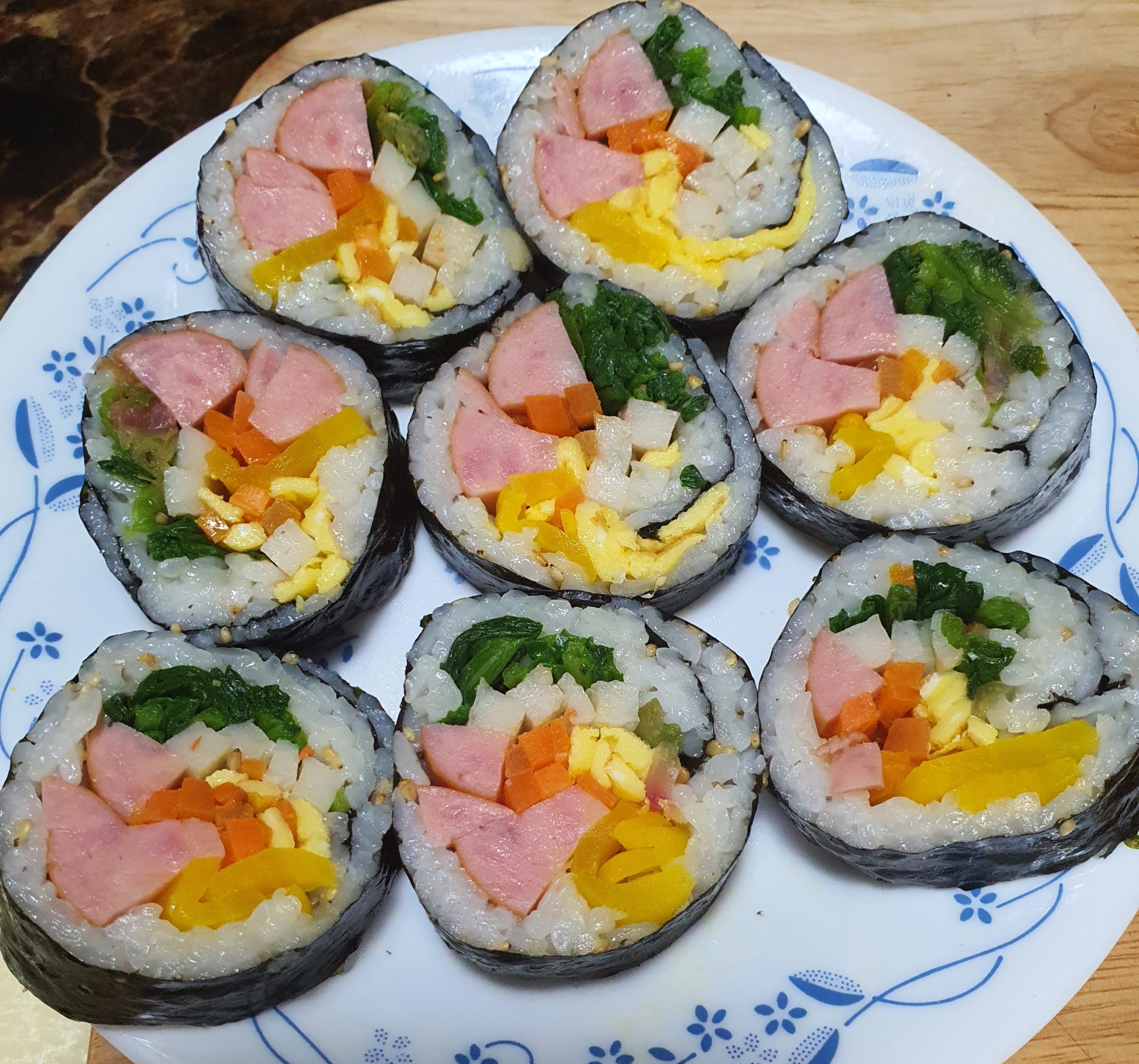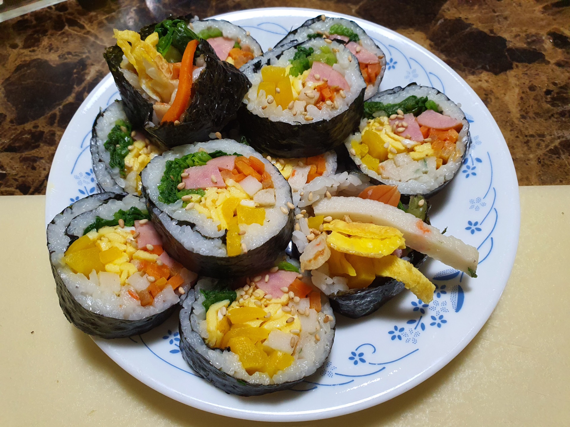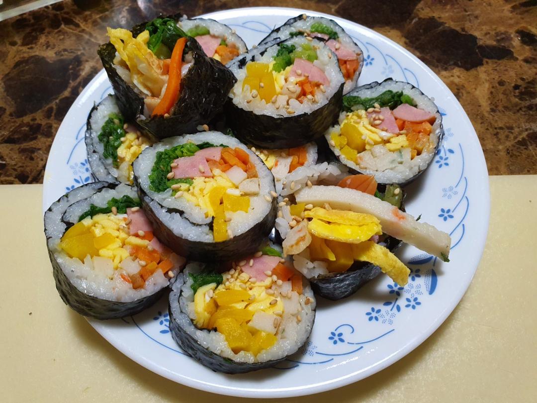 김밥이 진짜 맛있고 손이 많이 가는 음식인 것 같습니다 흑흑