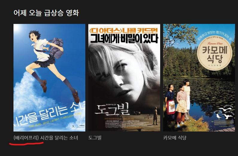 '어제 오늘 급상승 영화' 란에 개봉한지 15년이 된 애니가 뜬겁니다.