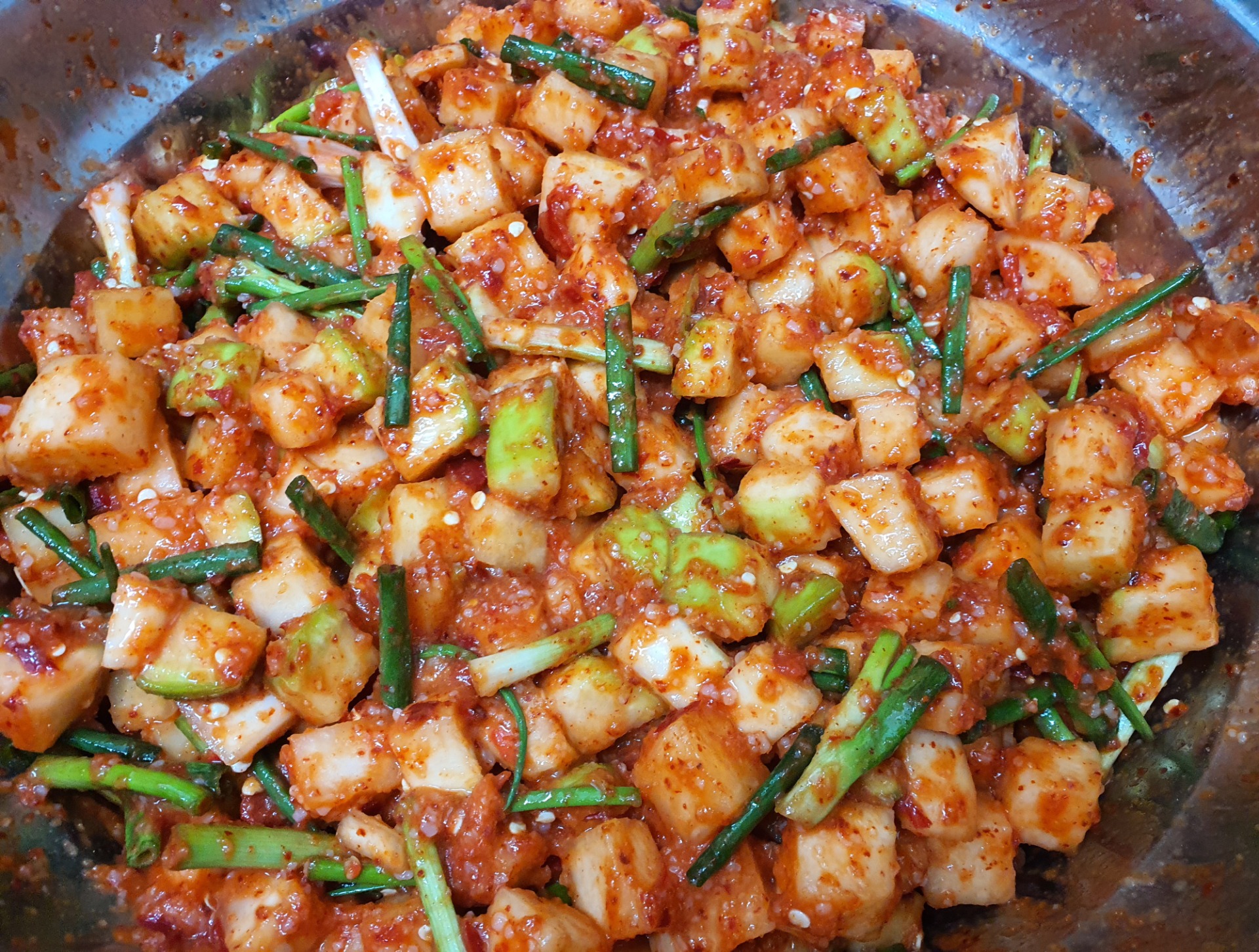 유튜브에서 시키는데로 만들었는데 맛있는 설렁탕집 깍두기같아서 딸아이도 엄청 잘먹네요.