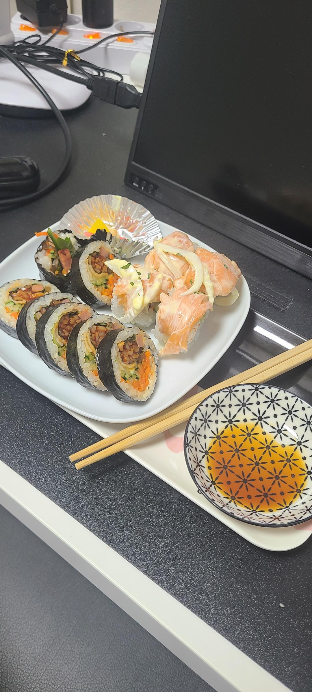 오징어채김밥 처음먹어보는데 맵습니다 ㅎㅎ