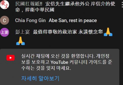 아베 신조 장례식 라이브 방송 채팅창