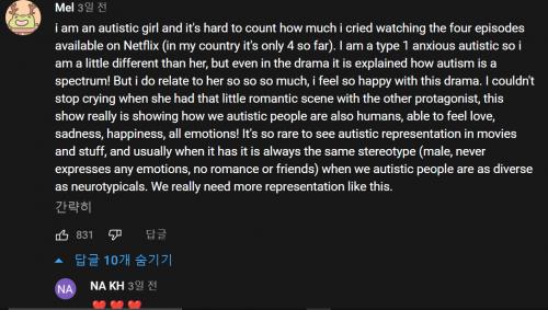 저는 그녀(영우)와 너무 많이 공감하고, 이 드라마 덕분에 너무 행복해요.