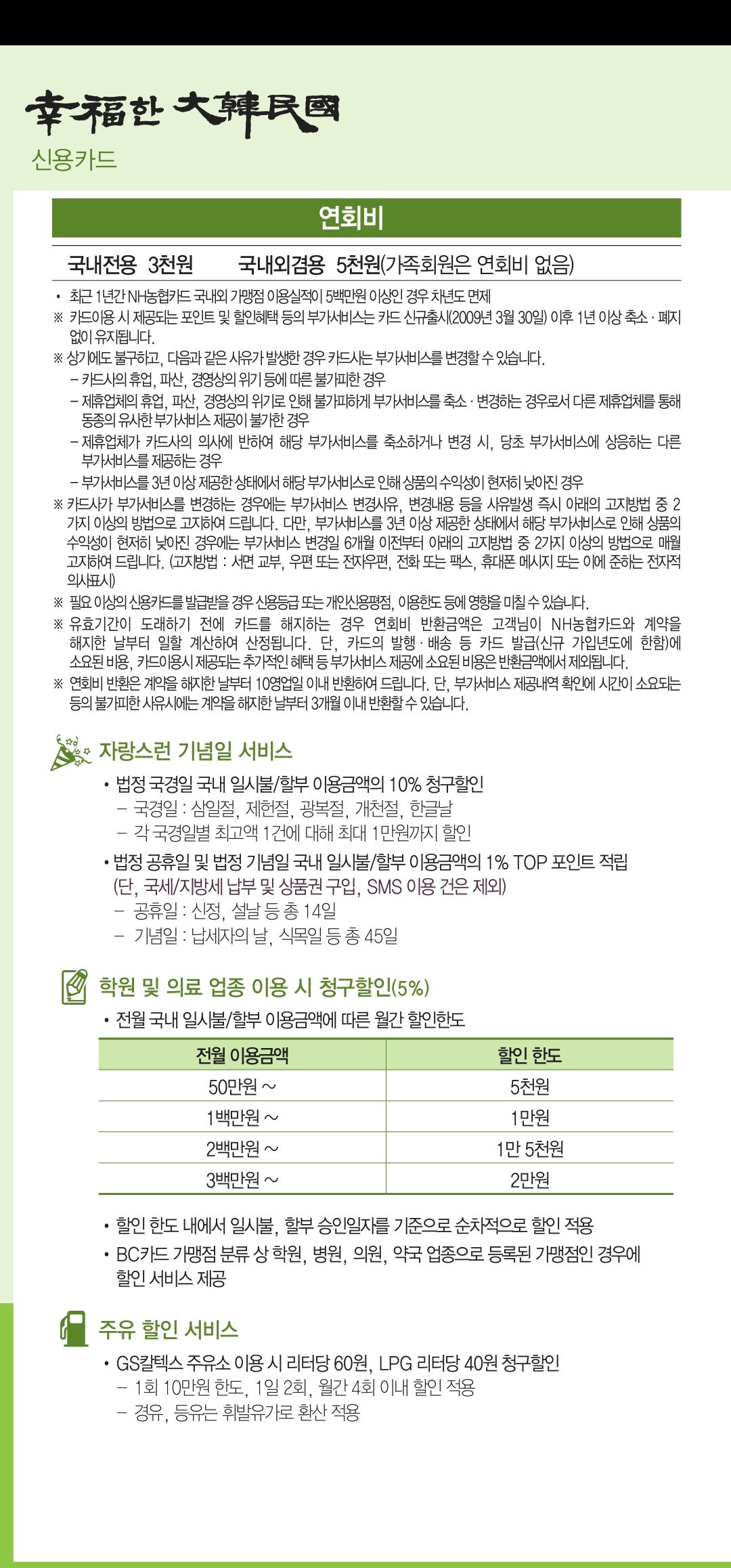 오늘은 NH농협은행 BC상품인 행복한 대한민국 신용카드를 소개할려고 합니다.
