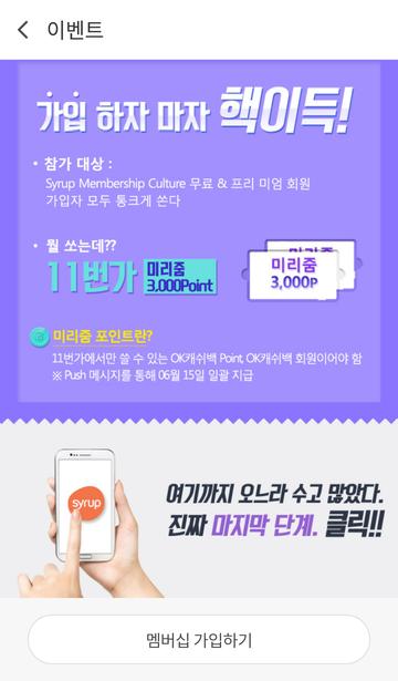 6월 초에 시럽컬쳐 가입으로 15일에 11번가 미리줌 3000 받은 분 계신가요? > 자유게시판