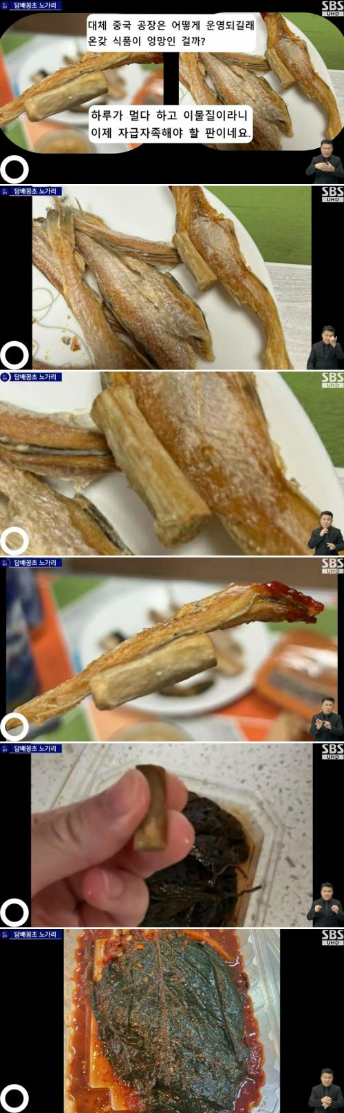 * 중국산 노가리 , 깻잎에서 " 담배 꽁초 " 발견
