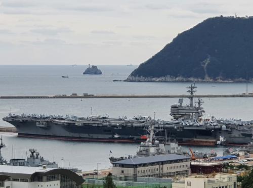 미 항공모함이 부산에 왔다고 북한에서 바로 미사일을 발사했다고 하네요...