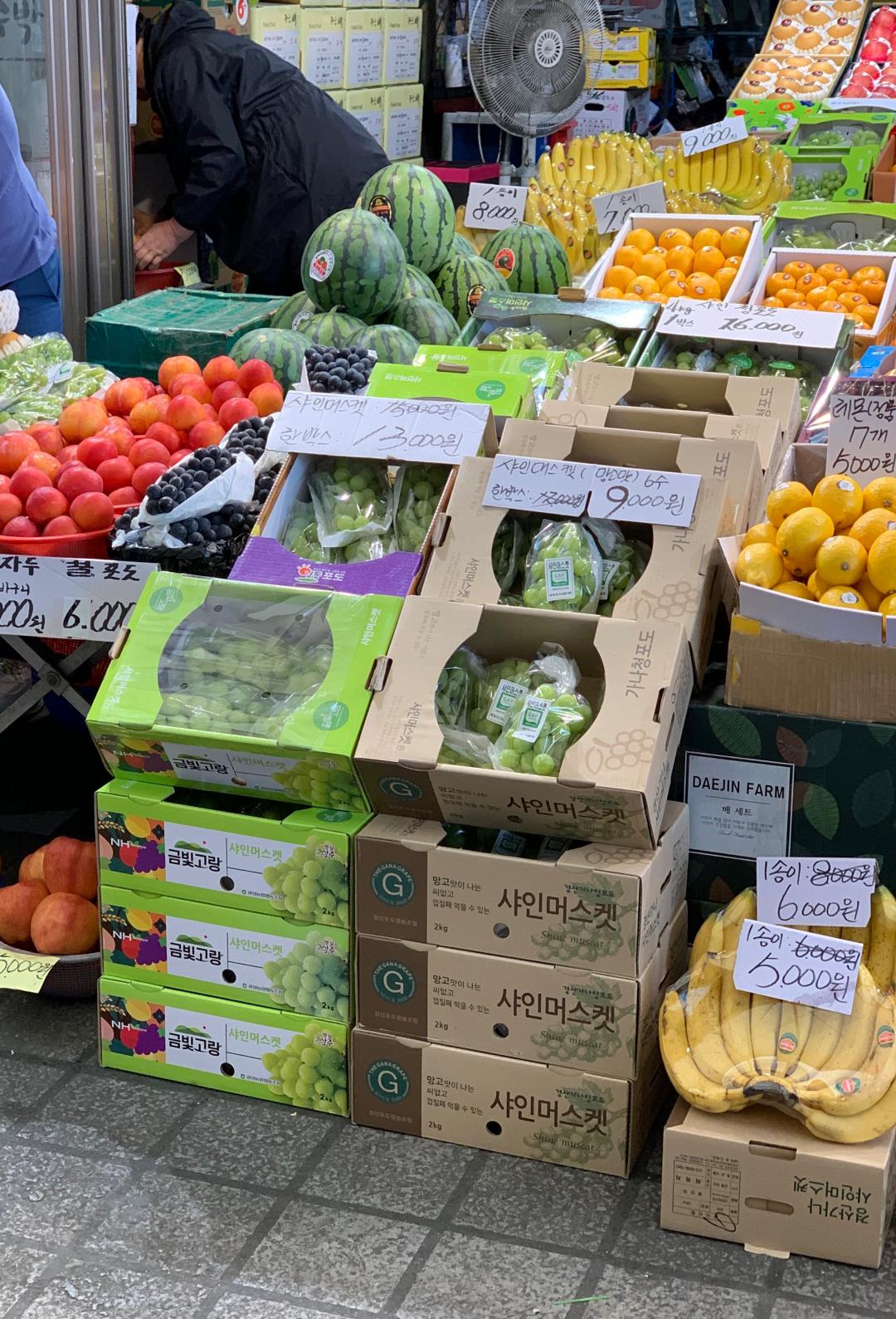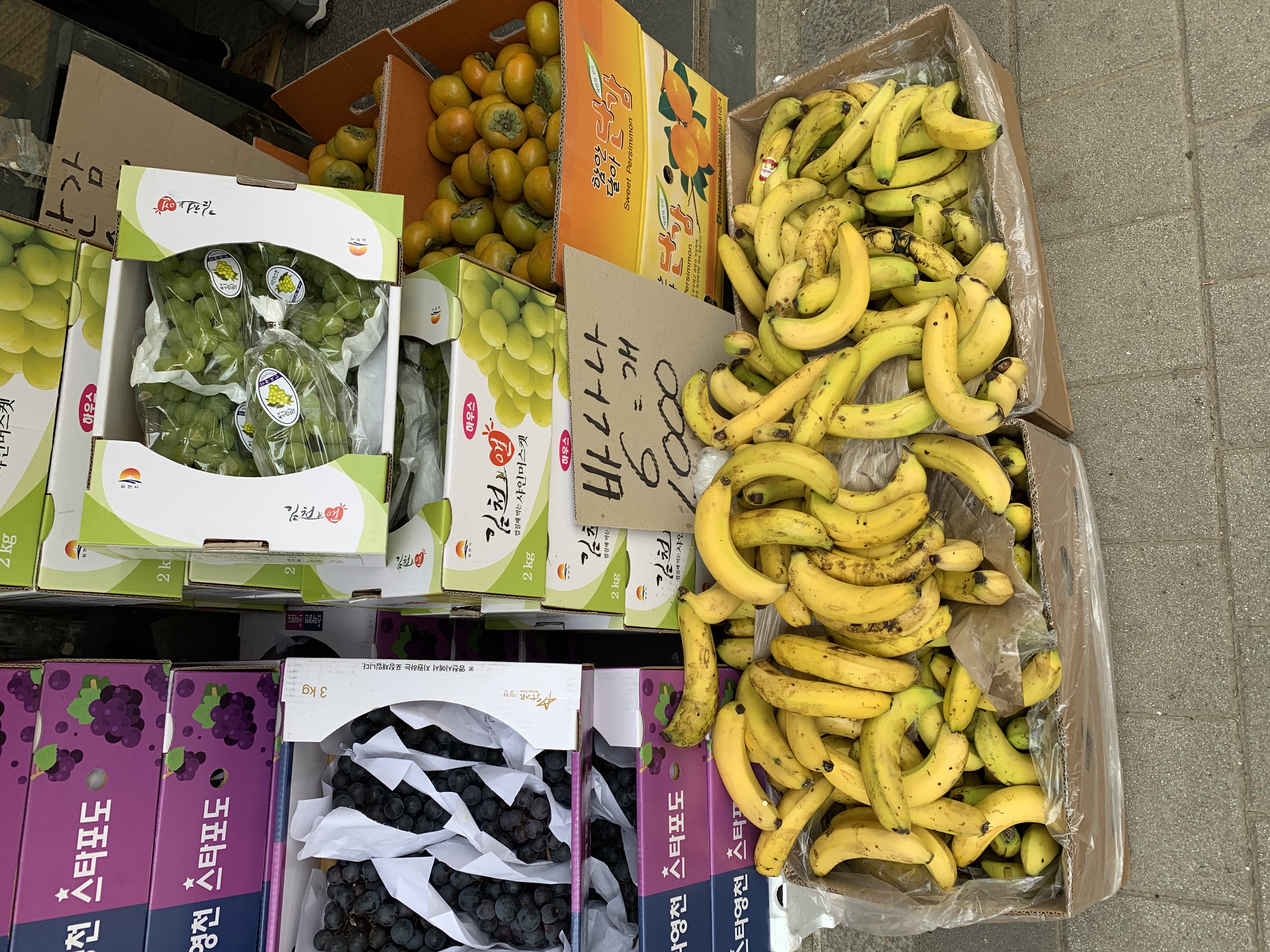 저는 여기서 샤인머스켓 2상자와 대봉시를 사고 근처에서 바나나 한 송이를 샀습니다.