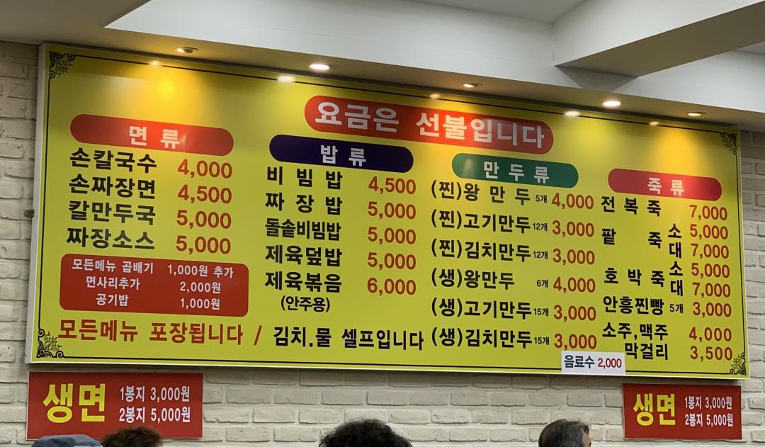 과일 살 것을 찜한 다음 배고파서 시장에 있는 홍두깨칼국수에서 칼만두를 먹었어요