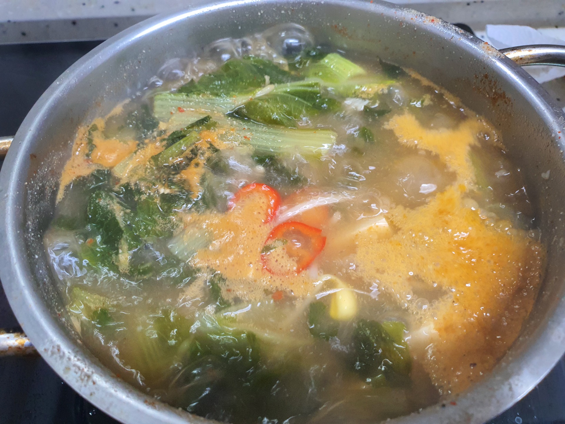 얼갈이 사둔걸로 콩나물이랑 두부 넣고 된장국 끓였네요뜨끈하게 한그릇 먹음 몸이 다 따뜻해지는 기분이더라고요.