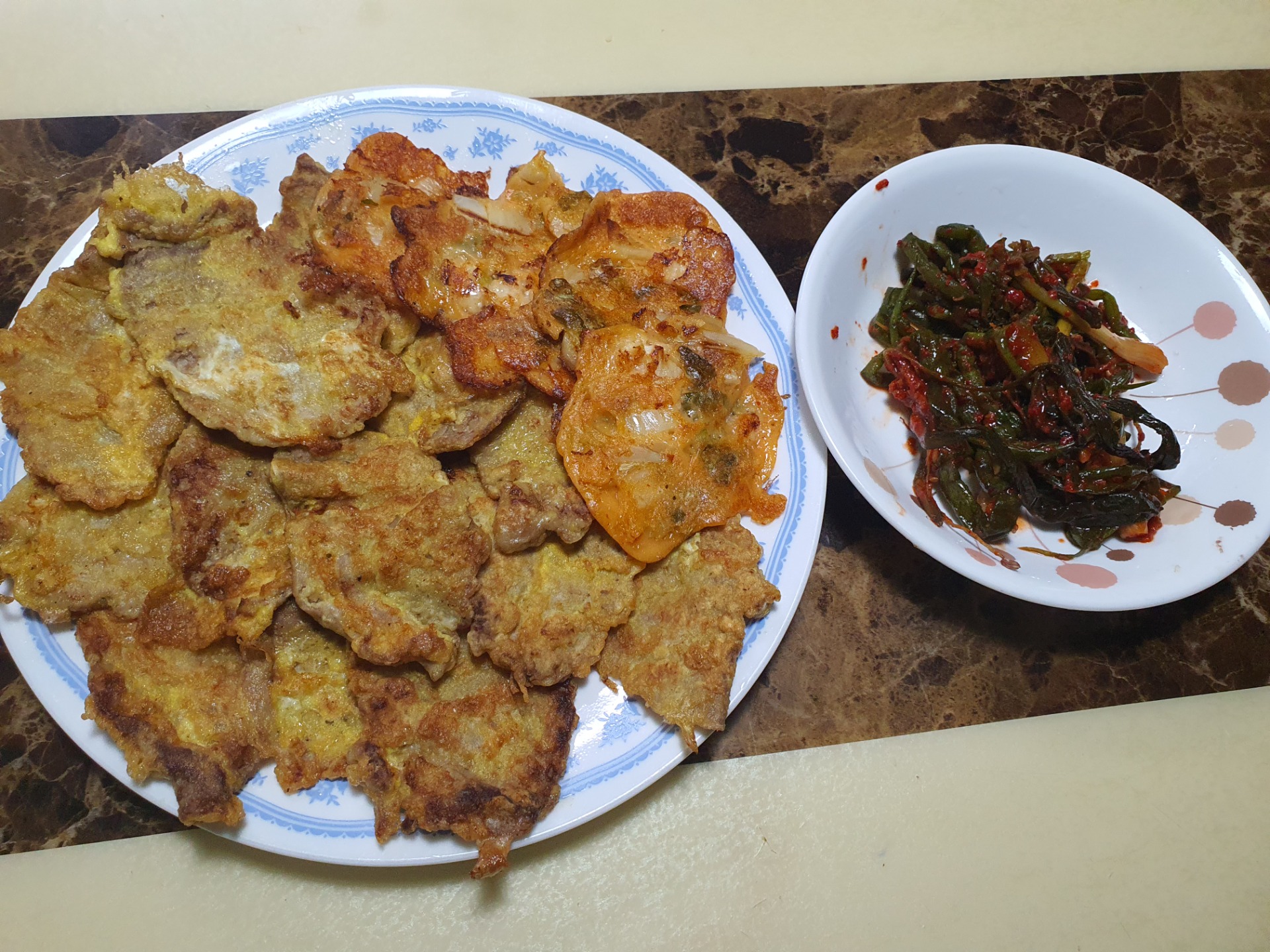 육전이랑 김치전 그리고 참치김치찌개네요..