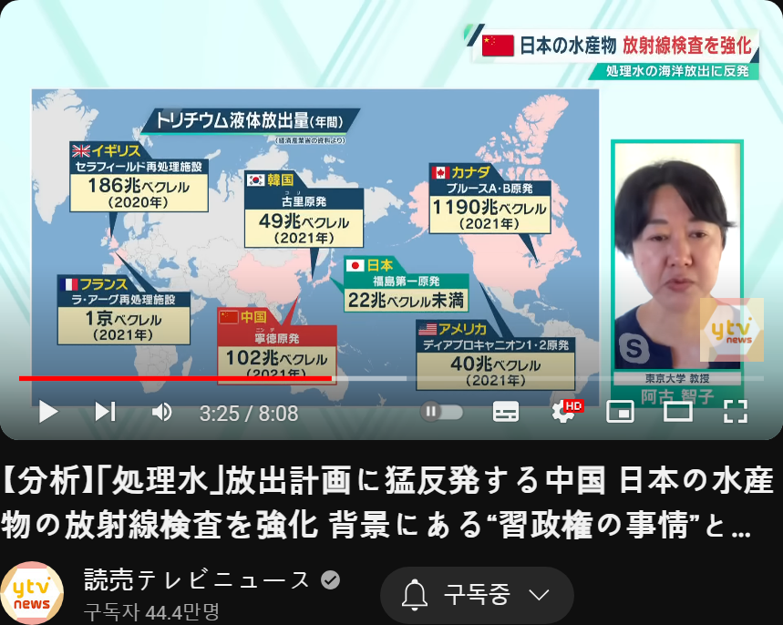 이고, 일본이 제일 착하게 ~~ 제일 적게 방출한다고 개소리 왈왈