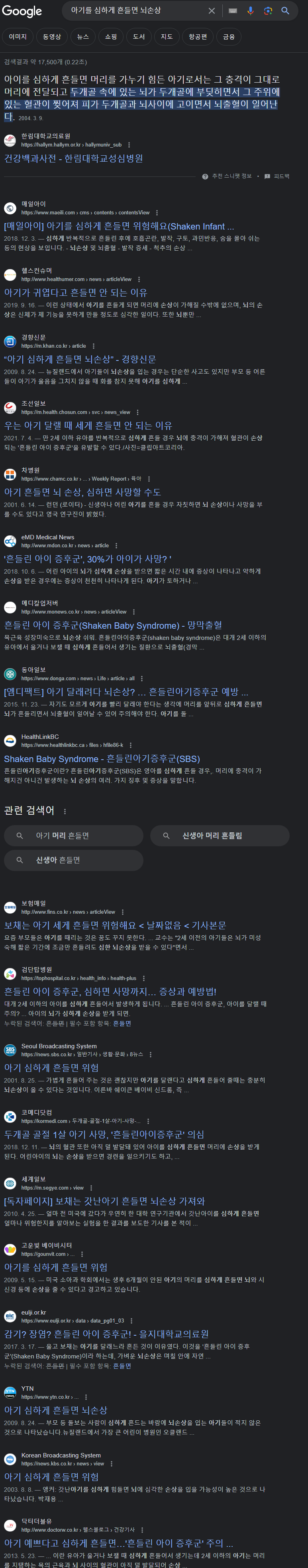 * 아기 흔들면 < 뇌 손상 > / 의학 News > 자유게시판