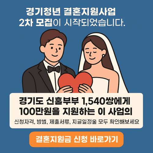 드디어 2025년 경기청년 결혼지원사업 2차 모집이 시작!