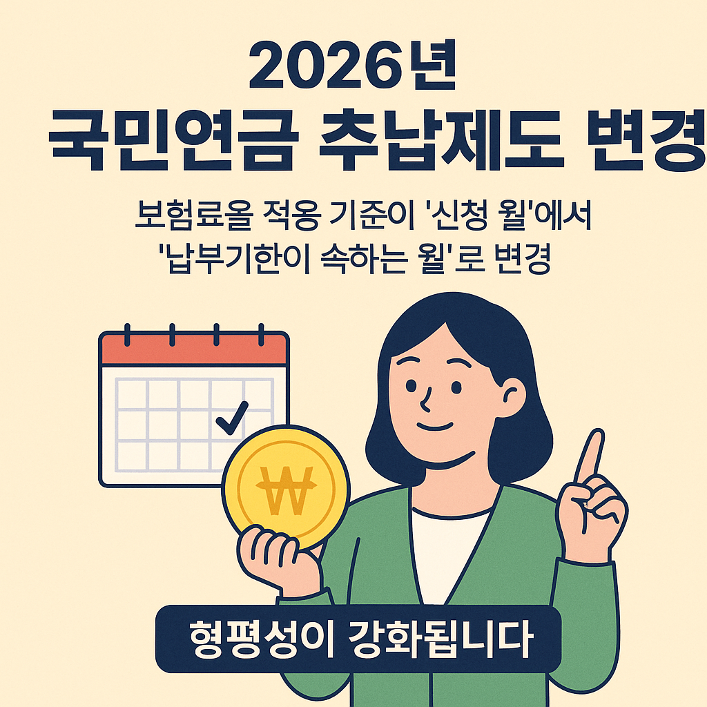 2026년부터 국민연금 추납보험료 산정 기준이 바뀝니다. 기존에는 ‘신청 월’의 보험료율을 적용했지만, 앞으로는 ‘납부기한이 속한 월’의 보험료율이 적용됩니다.