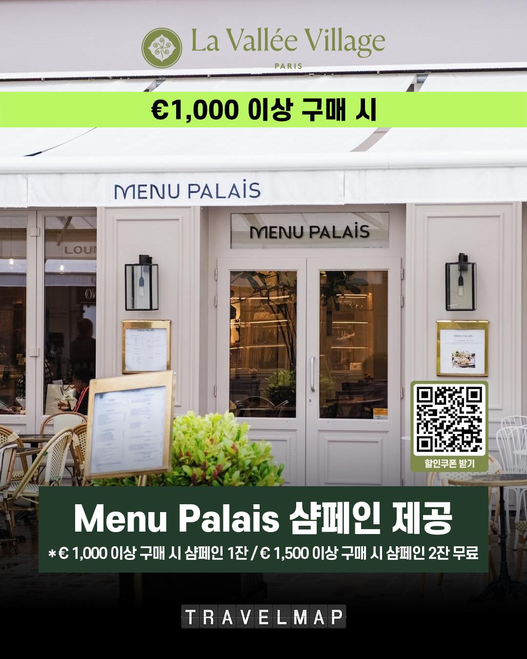 €1,000 이상 구매 시: Menu Palais 레스토랑 샴페인 1잔