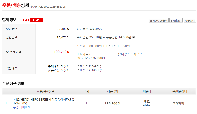 제가 좋아하는 겨울 야상다운 얼마에 샀나 볼려구 과거내역을 보니