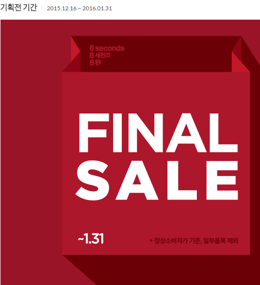 12월 16일부터 8세컨즈 겨울상품 떨이 세일하네요