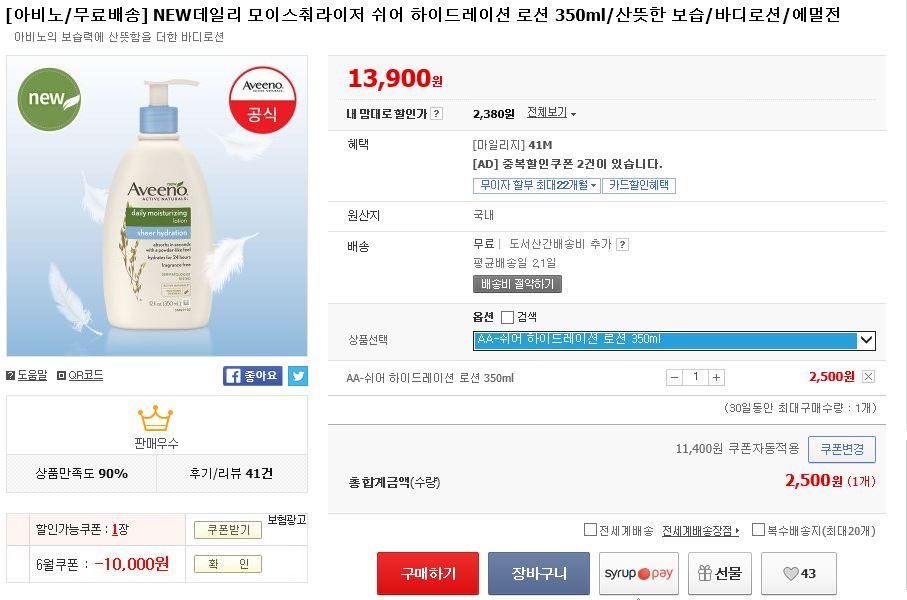 깨알같은 내맘대로 할인 먹여서 2380원에 바디로션 2개 얻어갑니다 ㅋㅋ