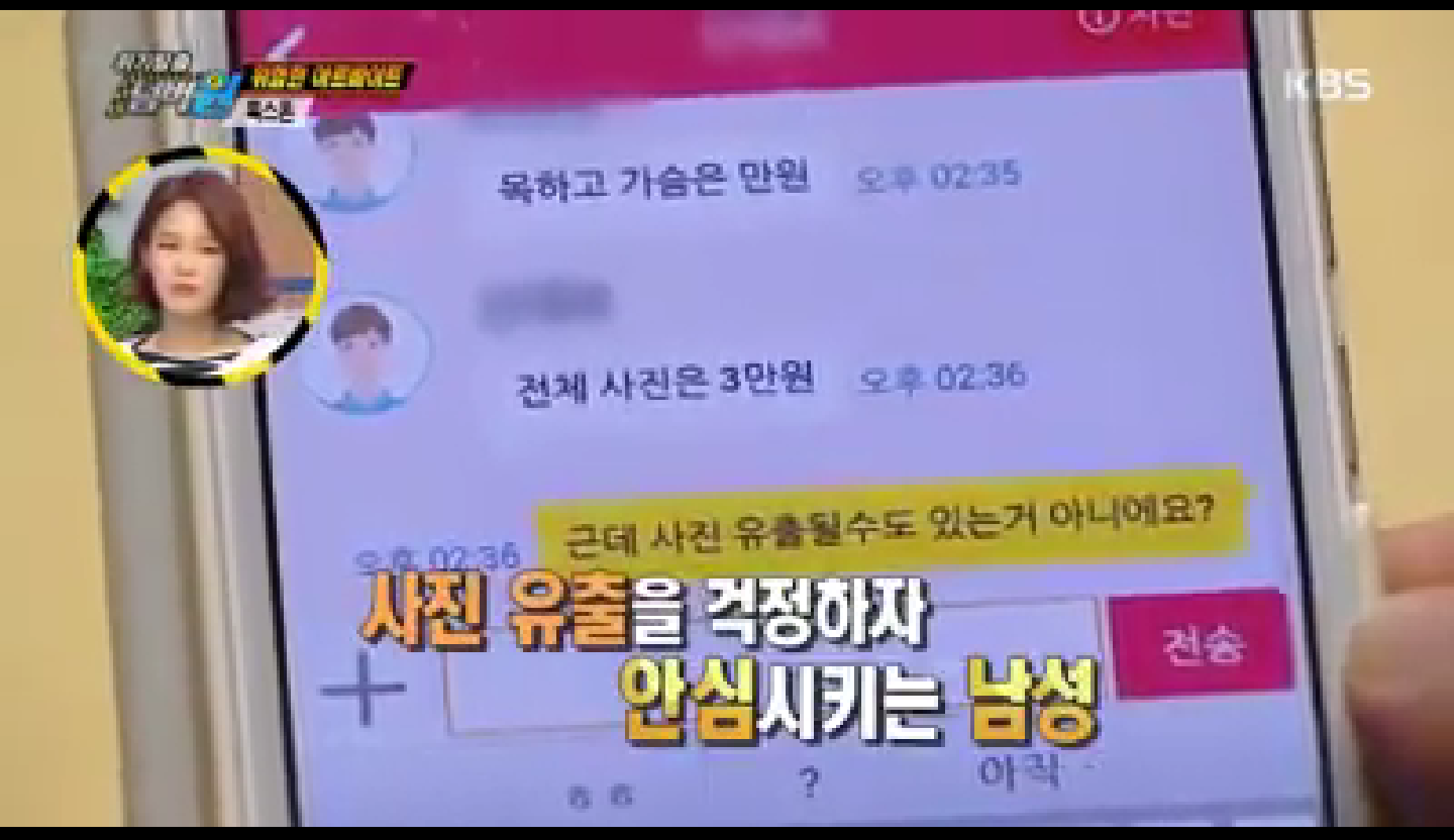 사진을 받으면 얼굴도 줘야 돈을 줄 것 아니냐 이런 식이구요