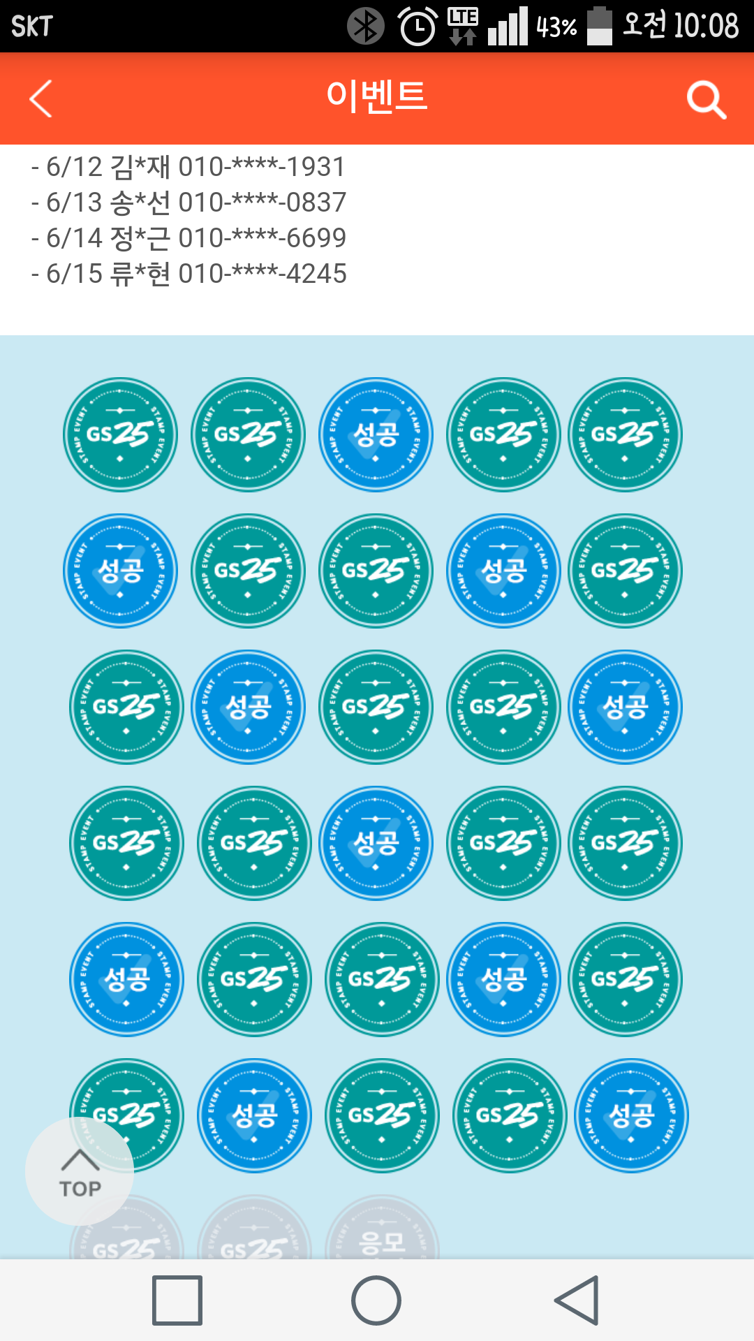 저기 당첨자중에 제가 한명 있구요.그리고 제가 스탬프 찍어서 응모한 횟수입니다..10만원