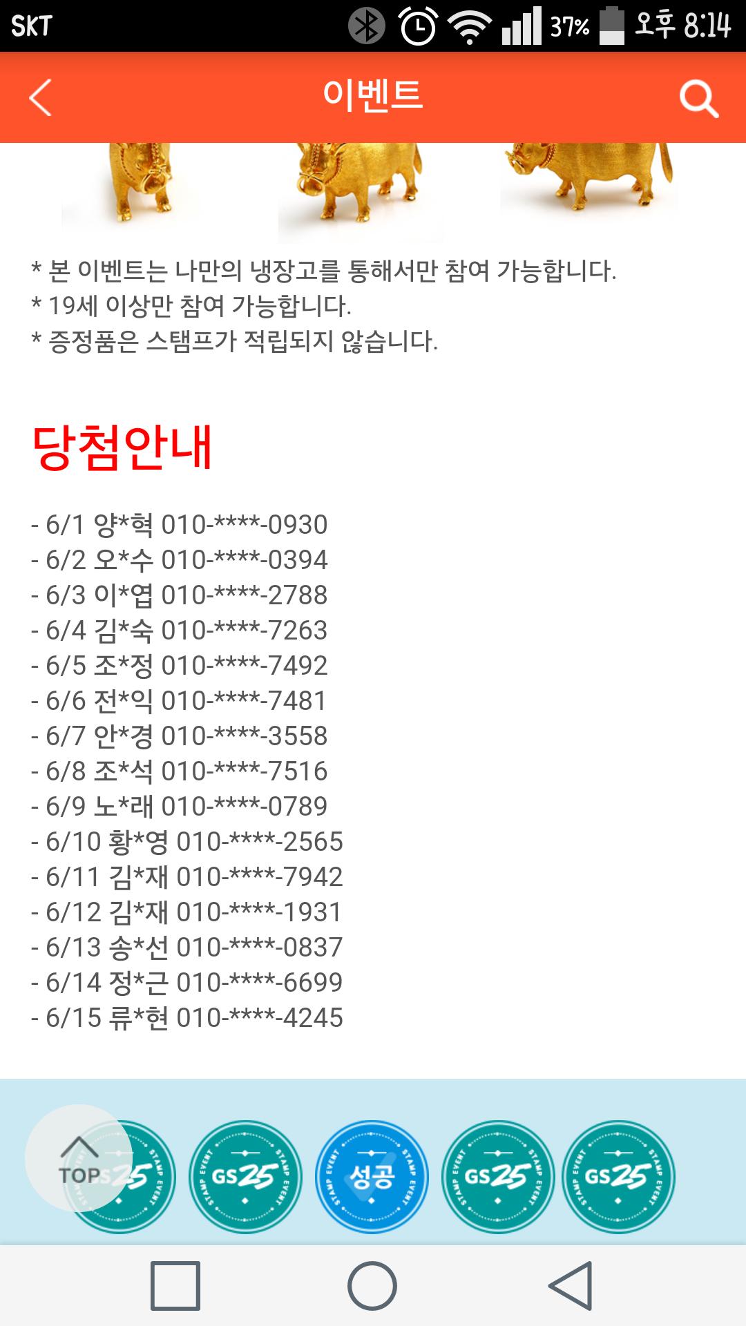 6월달에 하는 나만의 냉장고 어플에서 하는 순금송아지 경품 당첨 되었네요...
