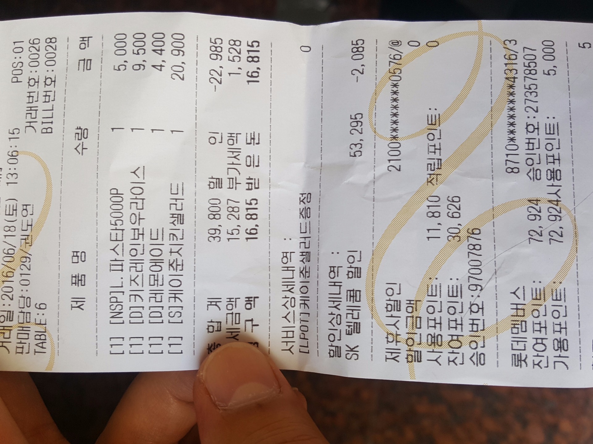 케이준치킨샐러드는 주문시 미리 말해야된다며 캐쉬백 추가할인은 안된대서 t멤버쉽할인하고 캐쉬백포인트로 계산했더니 미리줌5000포인트포함해서