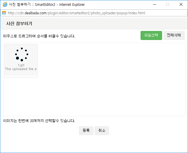 딜바다 에디터에 사진업로드 기능이 있으나, 대용량일 경우 업로드가 안되는 현상때문에