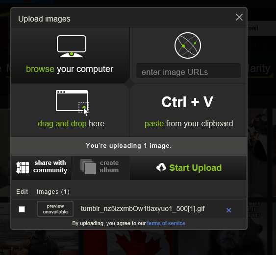 업로드할 이미지를 선택합니다. 그리고 "Start Upload"