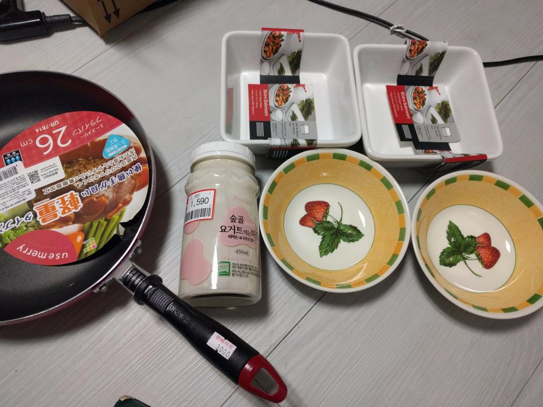 3. 킴스클럽 이랜드 멤버십(미리줌 5천+멤버십 5천):후라이팬(3천)+요거트 450l(1590)+하얀 전자렌지용 식기2개(2천)+노란 반찬 접시(4천원)