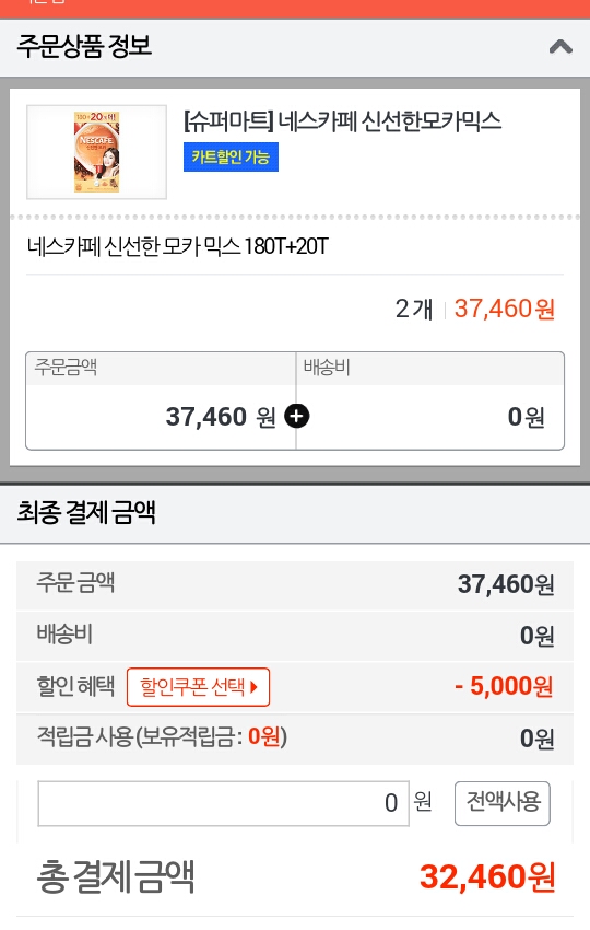 커피 400개를 32460원에 살 수.... ^^