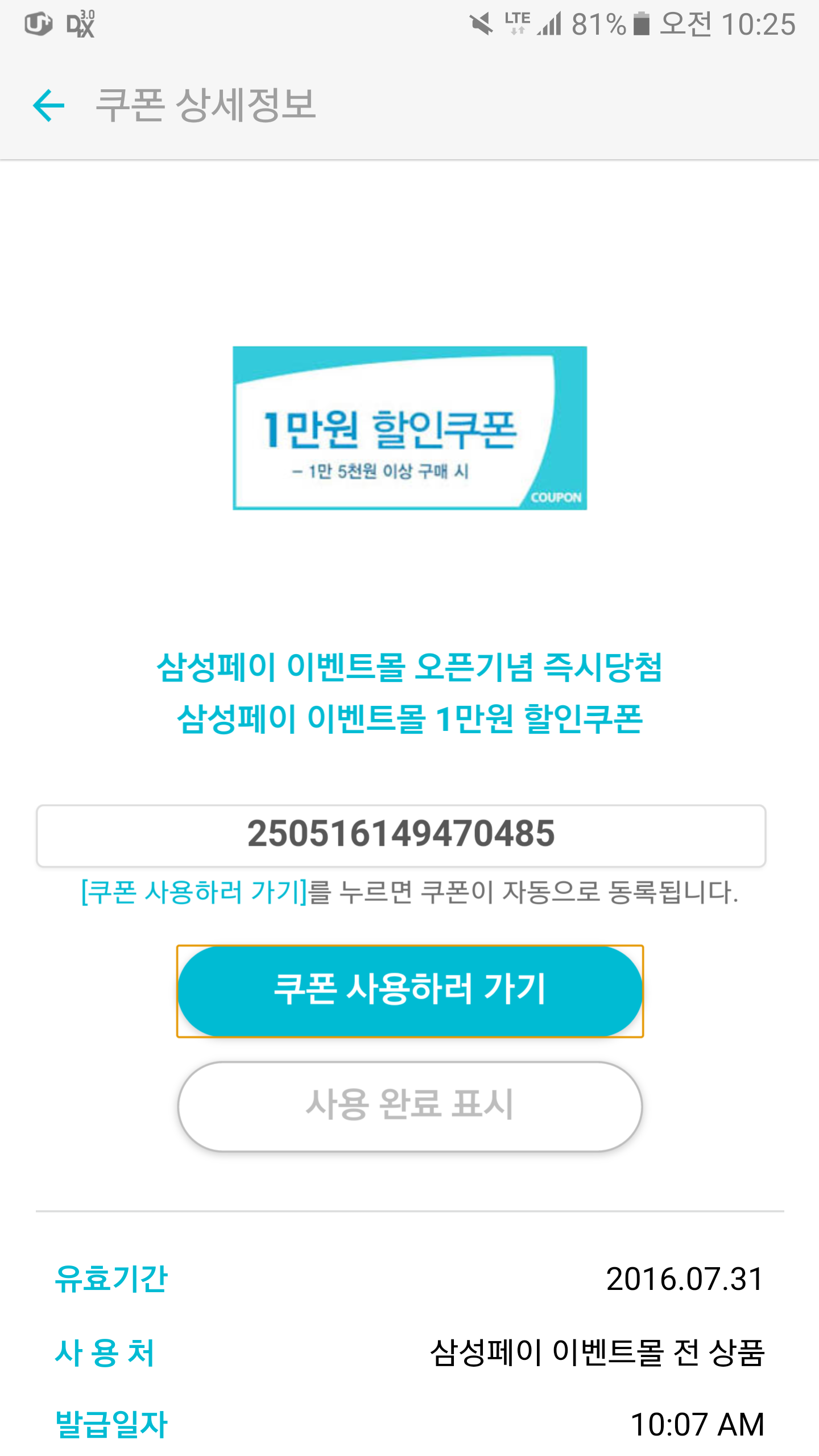 삼성페이 1만원 당첨
